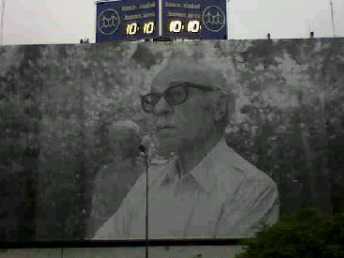 Se instaló sobre la fachada del Edificio del Plata, una gigantografía realizada por Daniel Mordzinski, reproduciendo una foto del escritor sobre una tela de 88 metros de ancho y 34 de alto