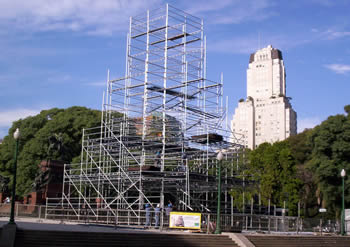 Llama la atención una enorme estructura de hierro que han emplazado junto al monumento del General San Martín en la plaza que lleva su nombre, se trata de una obra de Marta Minujín que se podrá visitar hasta el 28 de mayo