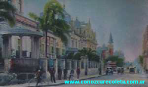Las dos fotos antiguas están tomadas desde ambas esquinas y en ellas se pueden apreciar los elegantes palacios que embellecían la avenida. También se puede observar a las personas que circulaban por ella, vestidos a la usanza y el carruaje tirado por caballos.