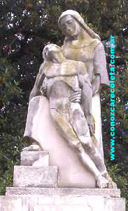 Esta conmovedora imagen, que recuerda "La Piedad" se encuentra emplazada en un cantero, frente a la puerta principal del Cementerio de Recoleta.