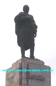 La obra, realizada en bronce, mármol y granito, es una creación del reconocido escultor uruguayo José Zorrilla de San Martín. y se encuentra instalada en la plaza República del Uruguay.