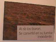 La muestra es un terrible recuerdo de los desaparecidos, como tema central, que se hace presente en las distintas obras, donde no falta el "Falcon" y el río, que fue una de las sepulturas elegidas en la época de la represión.