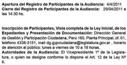 CONVOCATORIA A AUDIENCIA PUBLICA