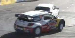 También estuvo girando su compañero de equipo, el finlandés Mikko Hirvonen, quien en un momento se paró sobre el asfalto, como si fuera un torero, mientras Loeb giraba a su alrededor a escasísimos centímetros ante el delirio de los presentes.