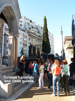 La calle por la cual se accede provisoriamente, mientras duren los trabajos en el peristilo, sale directo al pasillo donde se encuentra la bóveda de la familia Duarte, la más visitada, donde descansan los restos de “Evita”, una multitud de turistas en su mayoría extranjeros pasaban delante de ella y tomaban muchísimas fotos como recuerdo de su paso por allí. Consultamos a algunos para saber cuánto conocían sobre la segunda esposa de Perón y muchos respondían que “habían visto la película de Alan Parker”, otros que “oímos hablar sobre una heroína que ayudaba a los pobres”, otros ni siquiera tenían idea simplemente venían porque “les habían dicho que era alguien importante”. Lo cierto es que la mayoría tiene una imagen bastante distorsionada y simplemente vienen para sacarse la foto frente a la bóveda y decir que estuvieron allí.