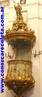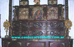 Fabricado en Buenos Aires con dorado a la hoja y fondo gris. Esta coronado por la imagen de San Pedro de Alcántara.