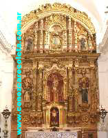 Es una obra maestra del arte barroco, dividido en dos cuerpos por una cornisa, soportada por seis columnas. Está trabajado a mano, pulido, policromado y dorado a la hoja.
